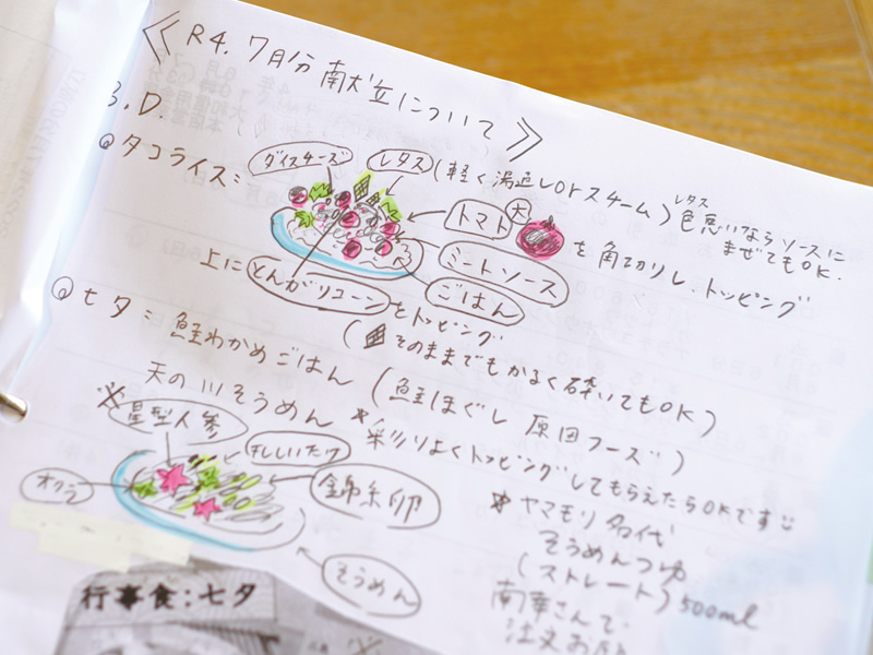 アイデアいっぱいのメニューが記された、川口さんのメモ帳。