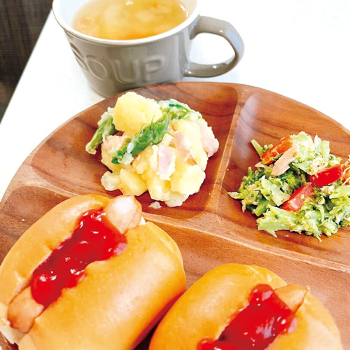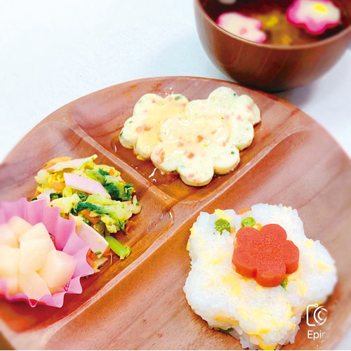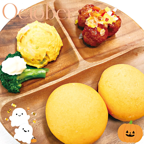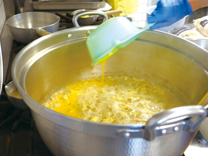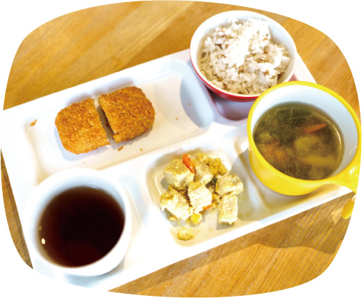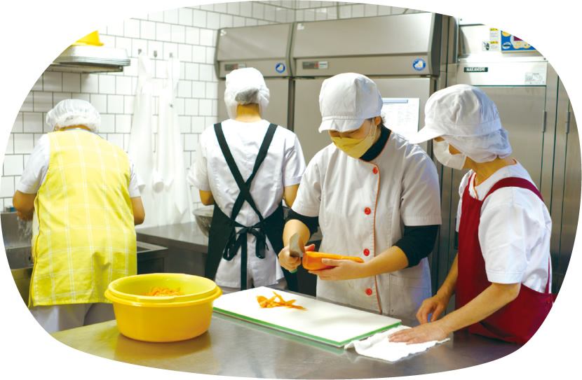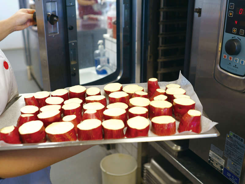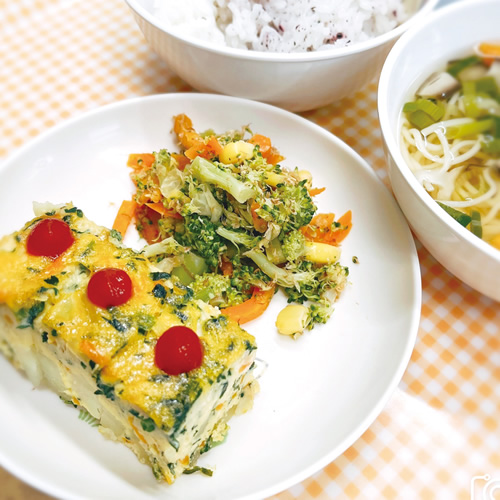 家庭で調理するときと同じように手作りしています。さつまいもなどの固い食材については、水蒸気による加熱調理ができるオーブンでやわらかくしたうえで使用。野菜や卵の色みを活かし、彩りよく盛り付けています。