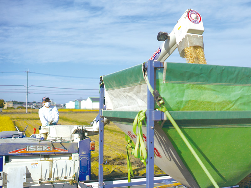 稲刈りと脱穀ができるコンバインで、効率よく作業が進められていました。