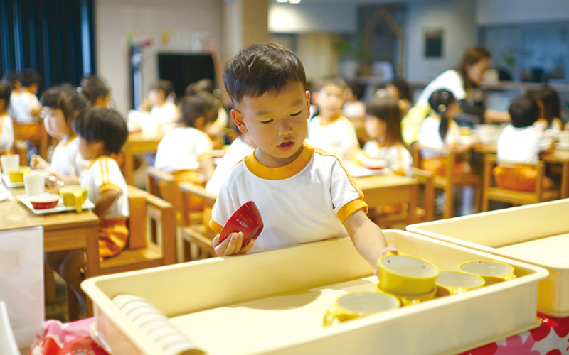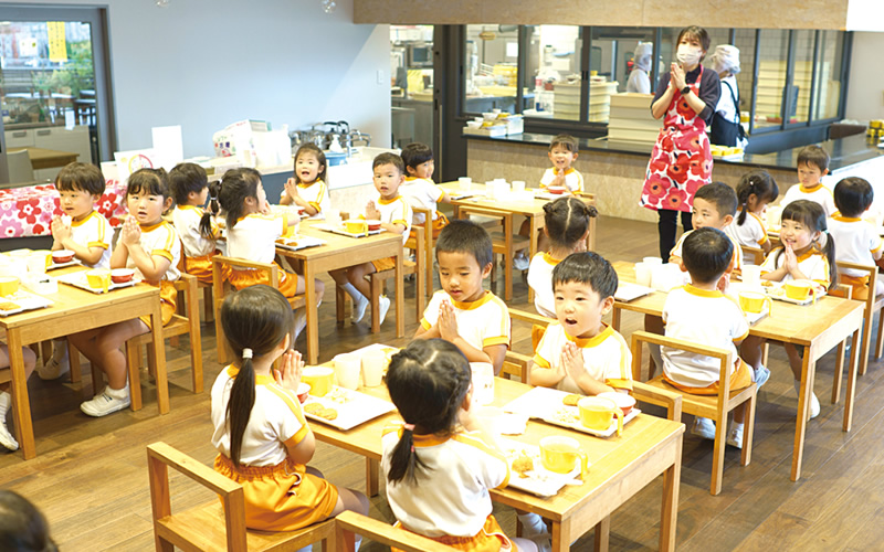 やまとこども園chouchouの3歳児クラスが、実際に昼食をとる様子を拝見。