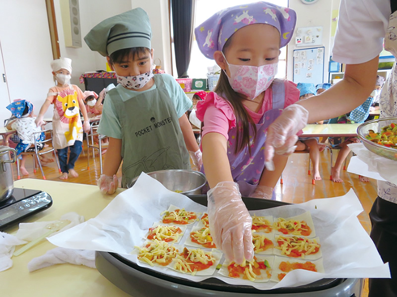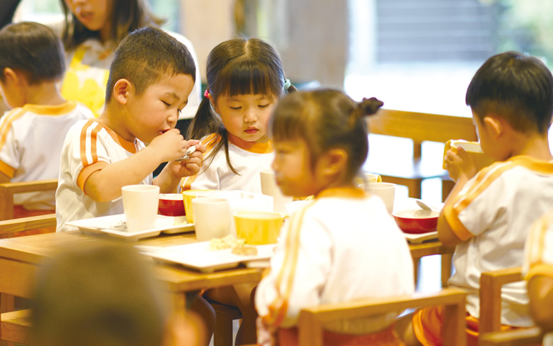 子どもたちにはこども園で思いっきり遊んだあとに、おなかいっぱい食べてもらいたいと考えています。