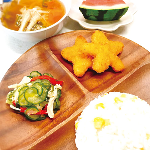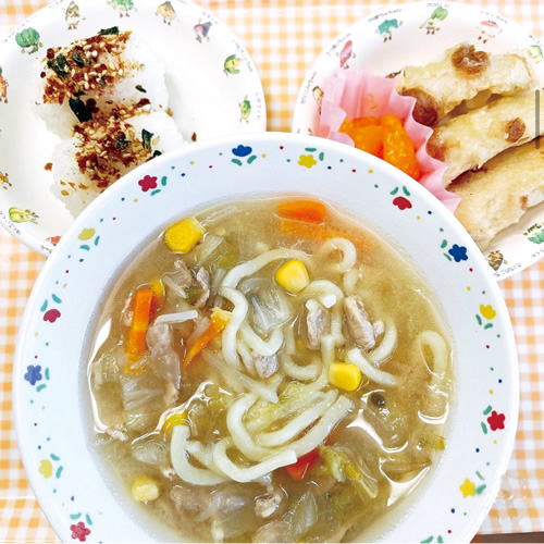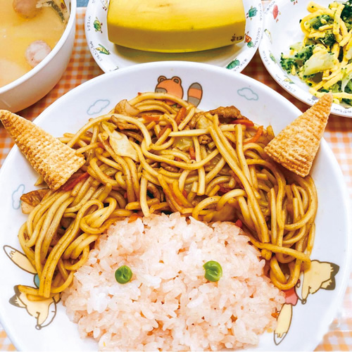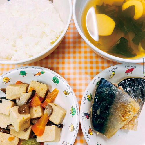 たくさん食べてもらうために、子どもにとって馴染みのあるハンバーグや麺類などを意識的に取り入れています。ひじきの煮物や高野豆腐は、見た目で苦手になりがちですので、インゲン豆や卵を加えるなど、彩りも栄養バランスもよくなるように工夫しています。月齢が上がるほど和食や野菜に慣れていき、好き嫌いが減っている印象です。