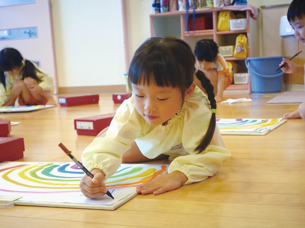 専門講師を迎えて体育や英語、絵画の教室を保育時間のなかで行っています。専門講師達の高いスキルを見せてもらうことは刺激的で、いつもとは違うやり方にも子どもたちはワクワクできるもの。深い学びの場を提供でき、保育教諭にとっても新たな気づきを得られます。