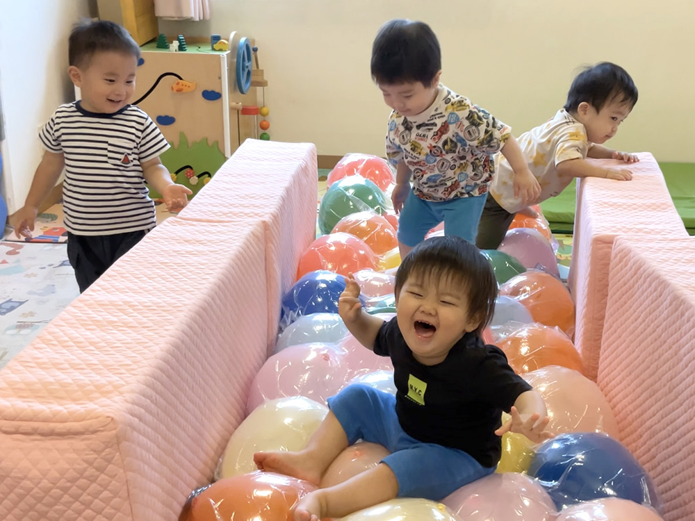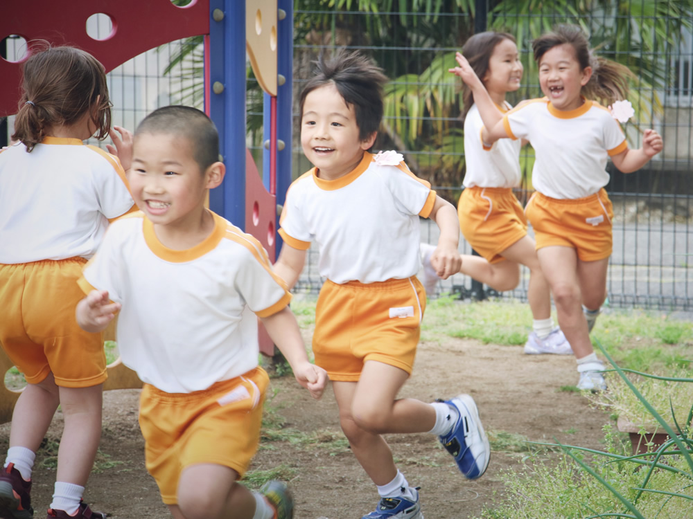 英語教室ではアクティブラーニングを主体とし、3~5歳児がゲームやカード、絵本、おもちゃなどを使ったり、体を動かしながら自然に英語にふれ、英語を使った表現にチャレンジしています。また外国人講師がふだんの保育時間も英語でコミュニケーションを取り、子ども達が語学への興味をより高め、英語で交流する喜びをより身近に感じてもらえます。園で共有できるよう、保育教諭もレッスンに参加しています。保護者からは「家でも英語で返事をしていて驚いた」などの声があがっています。