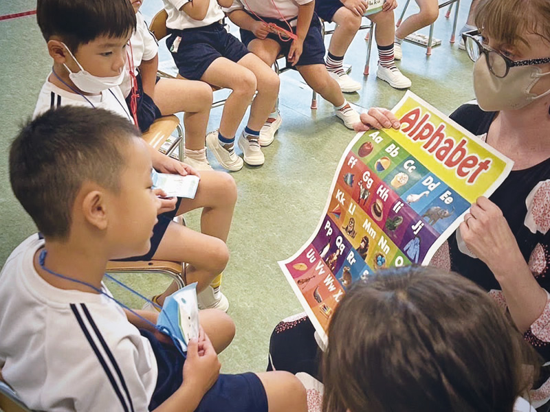 英語教室ではアクティブラーニングを主体とし、3~5歳児がゲームやカード、絵本、おもちゃなどを使ったり、体を動かしながら自然に英語にふれ、英語を使った表現にチャレンジしています。また外国人講師がふだんの保育時間も英語でコミュニケーションを取り、子ども達が語学への興味をより高め、英語で交流する喜びをより身近に感じてもらえます。園で共有できるよう、保育教諭もレッスンに参加しています。保護者からは「家でも英語で返事をしていて驚いた」などの声があがっています。