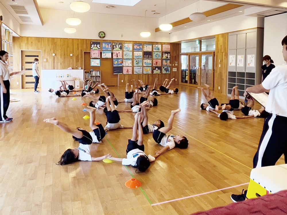専門講師を迎えて体育や英語、チアリーディングの教室を保育時間のなかで行っています。専門講師達の高いスキルを見せてもらうことは刺激的で、いつもとは違うやり方にも子どもたちはワクワクできるもの。深い学びの場を提供でき、保育教諭にとっても新たな気づきを得られます。